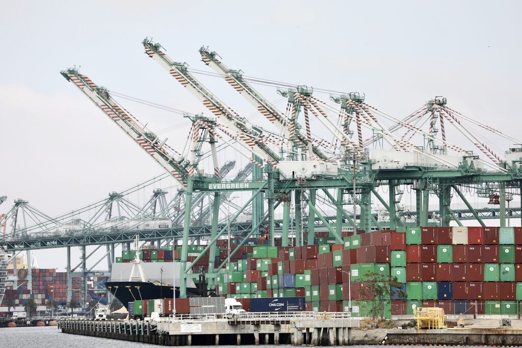 | Au port de Los Angeles, en Californie (États-Unis). |