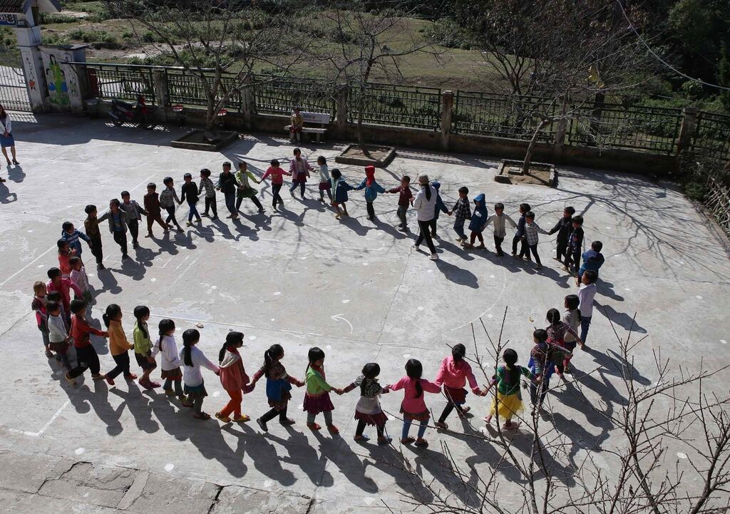 | Des enfants d'ethnies minoritaires dans une école primaire basée dans la province montagneuse de Lai Châu (Nord). |