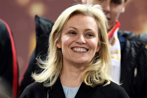 | La présidente de la LFP, Nathalie Boy, assiste à la finale de la Coupe de la Ligue entre Monaco et Paris à Bordeaux le 31 mars. |