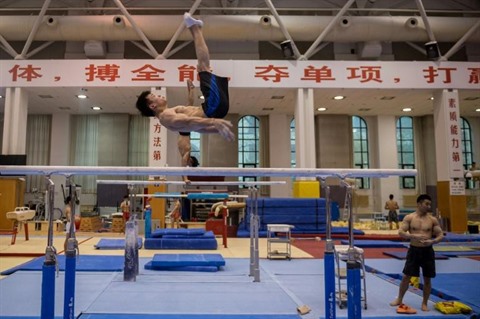 Car aux JO-2016 de Rio, la Chine n'avait pas remporté d'or en gymnastique, une déception pour un pays qui avait dominé la discipline lors des JO-2008, disputés à domicile à Pékin. Dans un centre d'entraînement national de Pékin, le drapeau chinois est accroché au mur, de même qu'une grande bannière, caractères blancs sur fond ronge, qui rappelle l'objectif ultime : "Remporter les Jeux olympiques de Tokyo".
