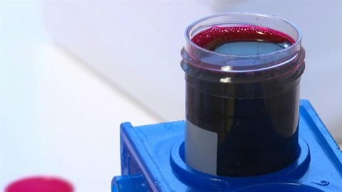 | Un échantillon contenant du jus de betterave utilisé pour la recherche d'un vaccin contre le paludisme le 15 décembre 2021 à l'université de Stockholm. |