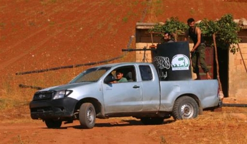 | Des combattants à bord d'un véhicule armé le 1er septembre à Marea. |