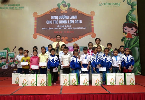 Concrètement, plus de 272.000 briquettes de lait de soja Fami Kid, d'une valeur totale de 906 millions de dôngs, ont été offertes à 3.200 élèves de 11 écoles primaires des districts de Con Cuông et de Nghi Lôc de cette province.