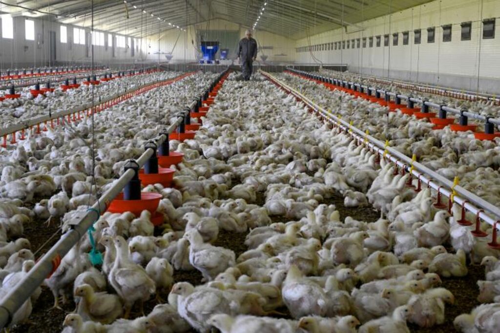 Le plumage blanc des volatiles est clairsemé : ils ont éclos depuis 20 jours. Mais ils font déjà près d'un kilo, 20 fois plus qu'à la naissance. Quand ils seront abattus, à 45 jours, ils pèseront plus de 3 kg.