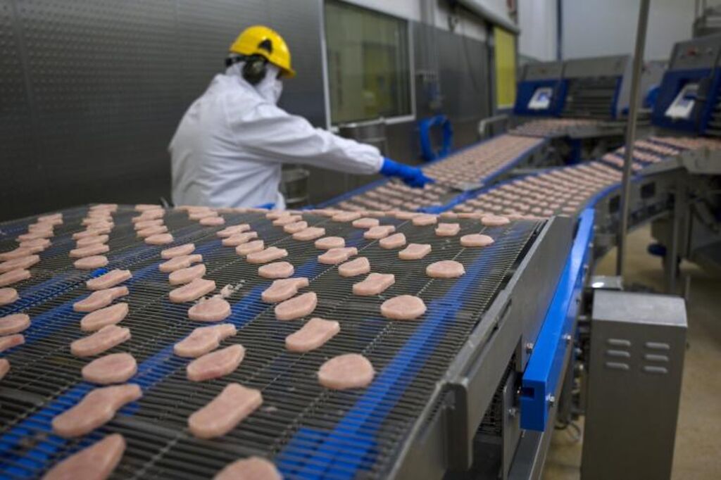 | Une ligne de production de nuggets de poulet, à Orléans (Loiret), le 9 octobre. |