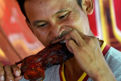 "C'est délicieux. C'est comme du poulet ou du bœuf", relève un client, Yit Sarin, en buvant une gorgée de bière.