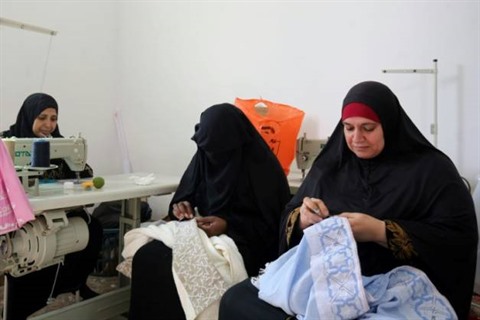 | Des réfugiées palestiniennes brodent au sein d'un atelier dans le camp de Jerash en Jordanie, le 5 novembre. |