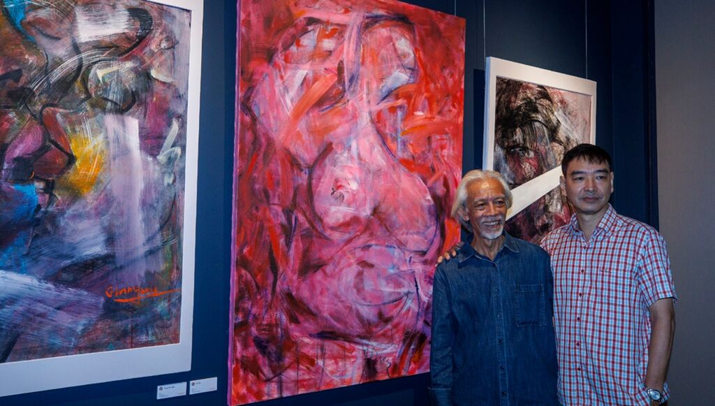 Les couleurs froides (bruns riches, violets anthracite, gris cendrés) prédominent bien souvent, mais il y a toujours une touche de rose chaud ou d'orange qui, selon ses mots, est "comme le souffle laissé après une émotion". Les peintures de Duc Giang s’inspirent aussi de sa ville natale, soit un dialogue très naturel entre mouvement et silence, entre émotions et contemplations du fleuve Rouge.