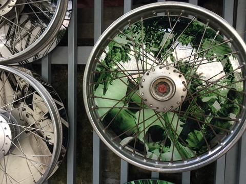 Un après-midi estival, dans une petite rue du quartier de Phuc Tân, à Hanoï, un groupe d'enfants se penche sur des jouets traditionnels. Leurs visages, perlés de sueur, sont resplendissants. Pour se reposer, ils s'assoient sur une longue boîte en verre qui contient différentes pièces de moto. Ce banc spécial, conçu par Nguyên Trân Uu Dam, un artiste américain d'origine vietnamienne, fait partie d'une grande œuvre artistique intitulée Les génies Gióng de la vie moderne. Elle reflète la vie urbaine au Vietnam accentuée par la question de la protection de l’environnement.
