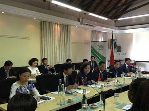 | Une haute délégation de Hanoï lors d'une séance de travail avec le maire de Tshwane, Solly Msimanga. |