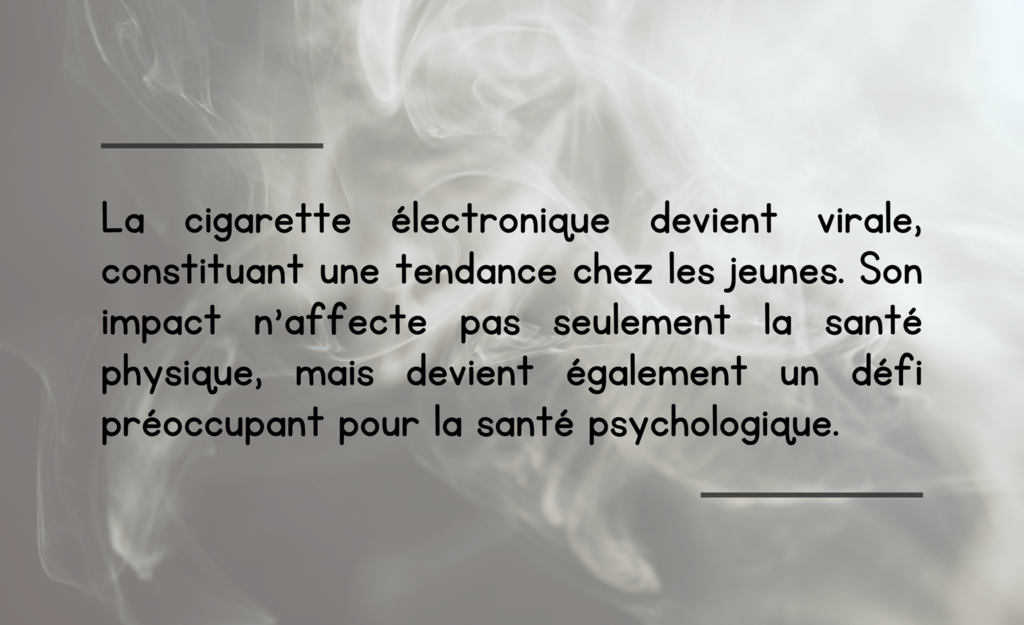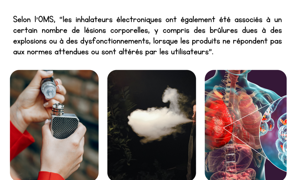 Mais ce qui mérite encore plus d'attention, c'est l’illégalité de la commercialisation officielle du tabac dans le pays. Informer et sensibiliser les jeunes aux dangers et dérives de la cigarette électronique est devenu nécessaire car cette consommation menace la santé et le développement des jeunes générations.
