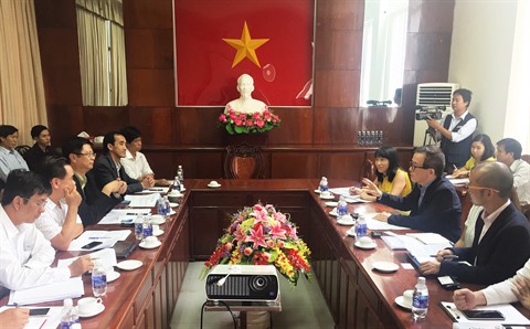 | La mission du groupe japonais Transcosmos (droite) s’échange avec les autorités de la ville de Cân Tho (Sud), le 18 avril. |