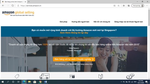 | Le site web "Amazon Global Selling" en vietnamien fournit des solutions aux entreprises et aux particuliers pour vendre des marchandises sur Amazon. |