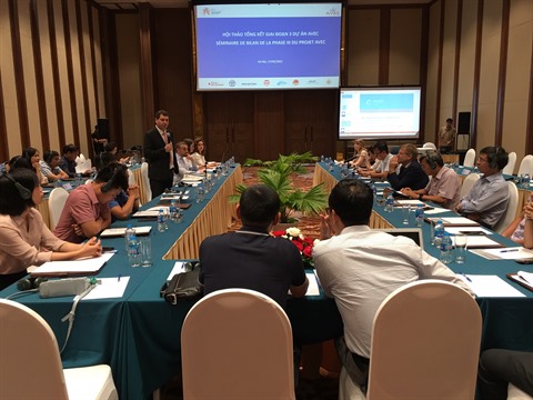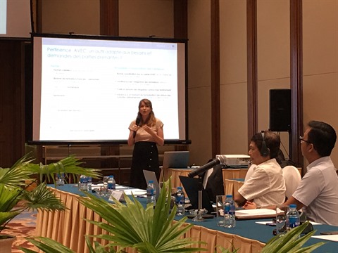 | Emmanuel Cerise (debout), directeur du PRX-Vietnam, prend la parole lors du séminaire de bilan de la phase III du projet "Avec", tenu le 17 juin à Hanoï. |