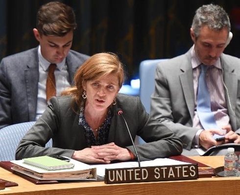 | L'ambassadrice des États-Unis à l'ONU, Samantha Power, s'adresse aux représentants du Conseil de sécurité sur la crise de l'Ebola, le 15 septembre à New York. |