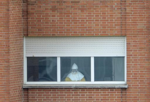 | Un membre du personnel médical de l'hôpital Carlos III de Madrid, où sont hospitalisés des cas suspects d'Ebola, portant une tenue de protection le 12 octobre. |