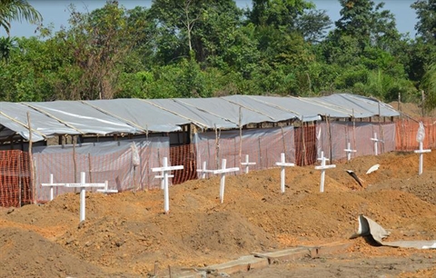 | Des tombes de victimes de l'épidémie d'Ebola à Monrovia, le 3 janvier. |