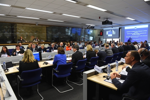 | Réunion des ministres européens de la Santé consacrée à l'épidémie Ebola, le 16 octobre à Bruxelles. |