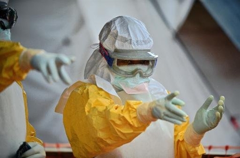 | Un membre de MSF dans un centre de traitement à Kailahun (Sierra Leone), le 15 août. Photo : AFP/VNA/CVN |