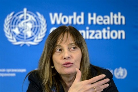 | Le Dr Marie-Paule Kieny, directrice générale adjointe à l'OMS, lors d'une conférence de presse, le 9 janvier 2015 à Genève. |