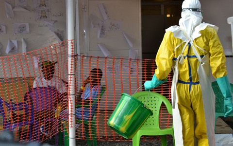 | Un soigneur marche vers des patients en quarantaine dans un centre de traitement d'Ebola à Conakry, en Guinée en 2015. Photo : AFP/VNA/CVN |