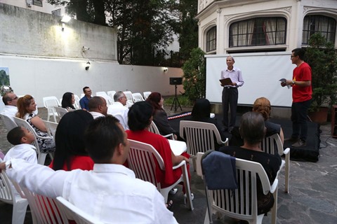 | L’ambassadeur du Vietnam en Argentinem, Dang Xuan Dung (debout, chemise blanche), à l'échange d’amitié. |