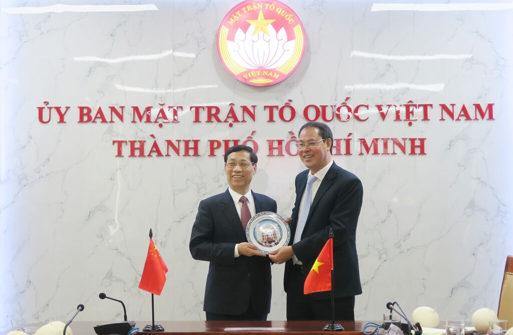 | Le vice-président du Comité du FPV de Hô Chi Minh-Ville, Nguyên Thành Trung (droite), et le vice-président de la Conférence consultative politique du peuple chinois de Shanghai, Wu Xinbao. |