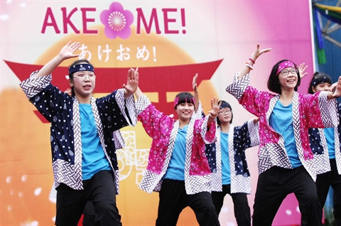 | Des artistes japonais interprètent la danse de Yosakoi. |