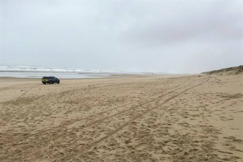 | Une voiture de gendarmerie sur la plage du Gressier au Porge (Gironde), où des paquets suspects ont été retrouvés le 11 novembre. |
