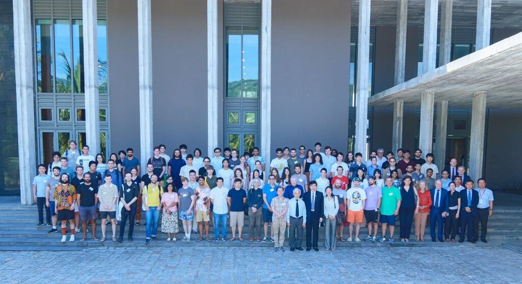 | Une centaine de scientifiques venus de 11 pays et territoires participant à l'École d'été avancée en théorie quantique des champs et gravité quantique à l'ICISE. |