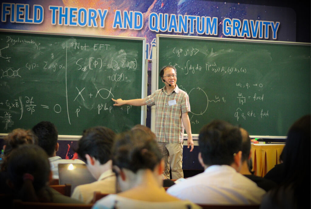 | Le Professeur Dàm Thanh Son (Médaille Dirac 2018) de l’Université de Chicago donne cours à l’École d'été avancée en théorie quantique des champs et gravité quantique, le 10 juillet à Quy Nhon. |