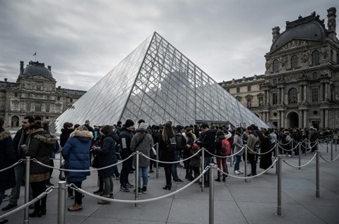 | Les visiteurs se pressent devant Le Louvre, qui a rouvert ses portes, le 4 mars. |