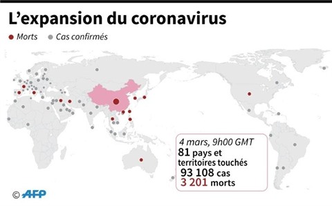 Le nouveau coronavirus affecte dorénavant tous les continents, sauf l'Antarctique, et perturbe la vie quotidienne dans un nombre croissant de pays.