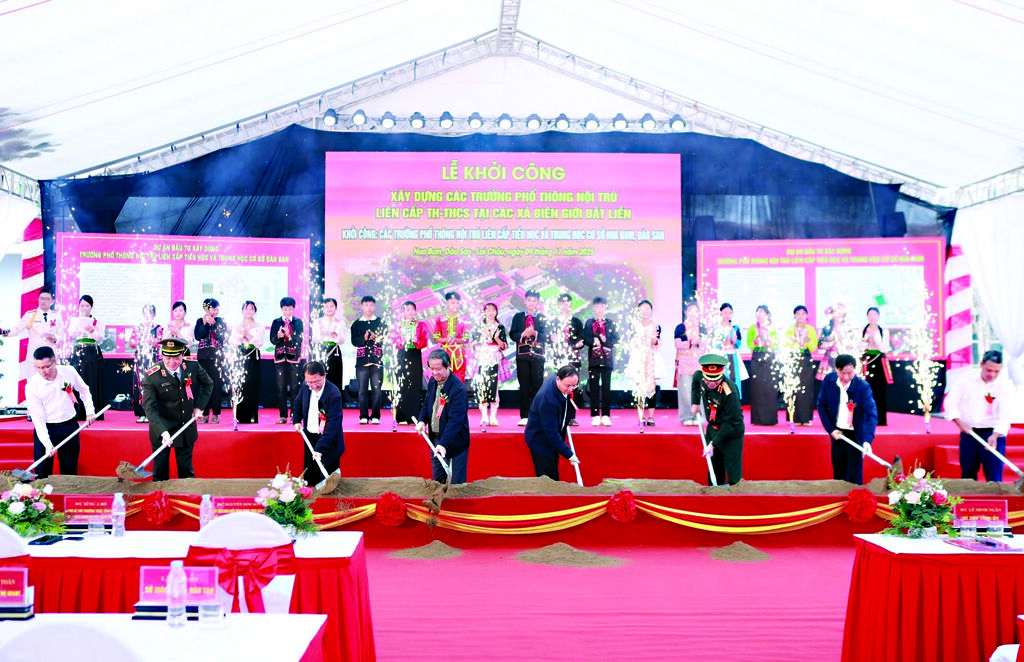 | Cérémonie de lancement des travaux de construction d’écoles-internats dans les communes de Hua Bum et de Dào San, province de Lai Châu (Nord), le 9 novembre. |