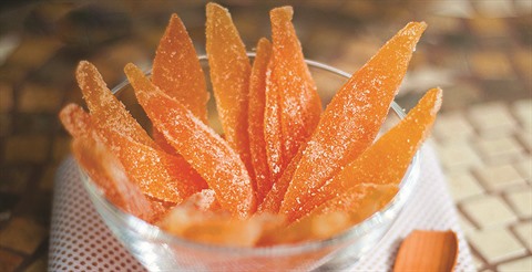 - Une fois les écorces bien enrobées de sucre cristallisé, éteindre le feu.