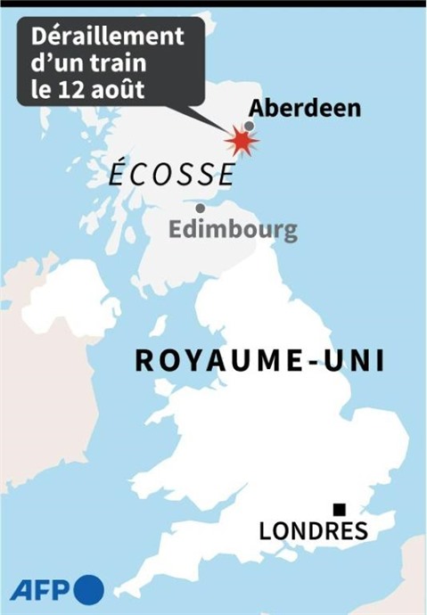 Les services de secours ont été appelés à 09h43 heure locale (08h43 GMT) à la suite du déraillement du train, composé de quatre voitures et parti à 06h38 d'Aberdeen en direction de Glasgow. L'accident est intervenu près de Stonehaven, à environ 25 kilomètres au sud d'Aberdeen, où le trafic ferroviaire était perturbé en raison de glissements de terrain.