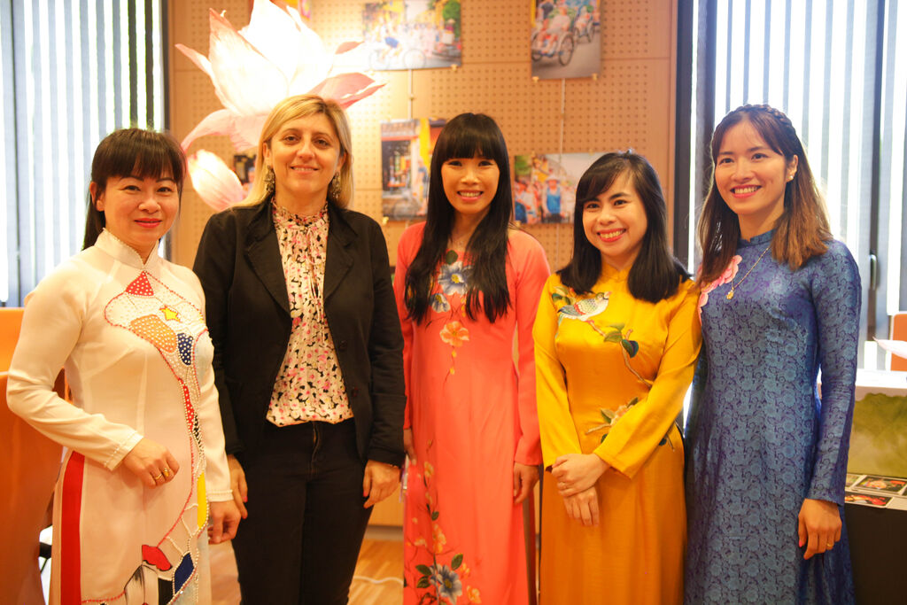 La deuxième intervenante, Nguyên Thi Cuc, une enseignante vietnamienne avec plus de 20 ans d'expérience dans l'éducation et les échanges culturels pour des milliers d'étudiants vietnamiens et français, a partagé avec ses amis français l'histoire de l'ao dài et son lien avec les enseignants et les élèves. Lors de l'événement, elle a également aidé les participants français à découvrir la tunique traditionnelle vietnamienne lors de l'atelier "Dessiner l'ao dài" en utilisant de l'aquarelle.