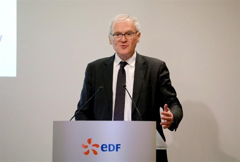 | Le PDG d'EDF, Jean-Bernard Lévy, lors de la présentation des résultats 2019 du groupe à Paris, 14 février 2020. |
