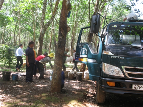 | Récole du latex dans la commune d’Ea Tul, province de Dak Lak. |