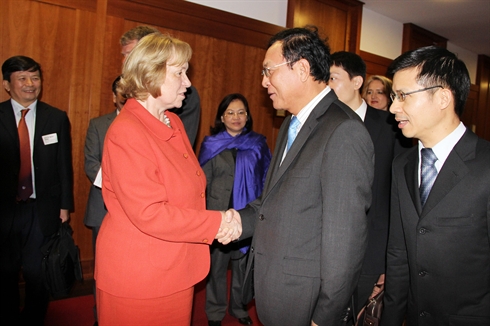 | Le ministre vietnamien de l'Éducation et de la Formation, Pham Vu Luân, et la ministre adjointe aux Affaires étrangères allemande Maria Böhmer. |