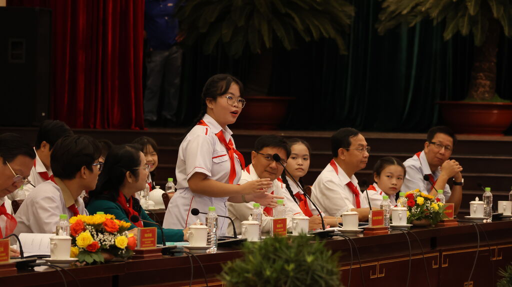 | Hô Chi Minh-Ville organise chaque année un dialogue entre les dirigeants et les élèves afin de construire un environnement scolaire convivial et inclusif. |