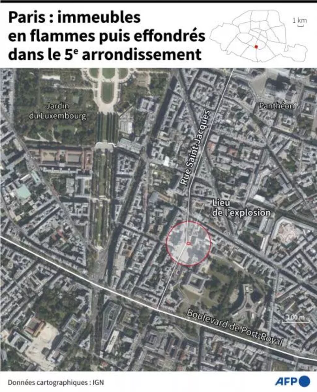 | Image satellite du 5e arrondissement de Paris, localisant les immeubles touchés par l'explosion du 21 juin. Photo : AFP/VNA/CVN |