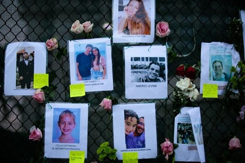 | Les photos de personnes manquantes après l'effondrement partiel d'un immeuble à Surfside, en Floride, le 26 juin. |