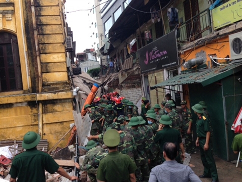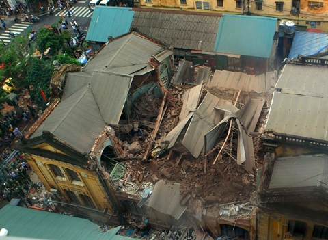 | Scène de l’accident de l’ancienne maison à la française du 107, rue Trân Hung Dao (Hanoi), le 22 septembre. |