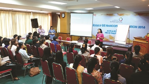 | Trân Thi Mai Yên s’adresse aux enseignants francophones vietnamiens, cambodgiens, lao participant à l’école d’été francophone 2016 organisée par le CREFAP dans la ville de Vung Tàu, province de Bà Ria-Vung Tàu (Sud). |