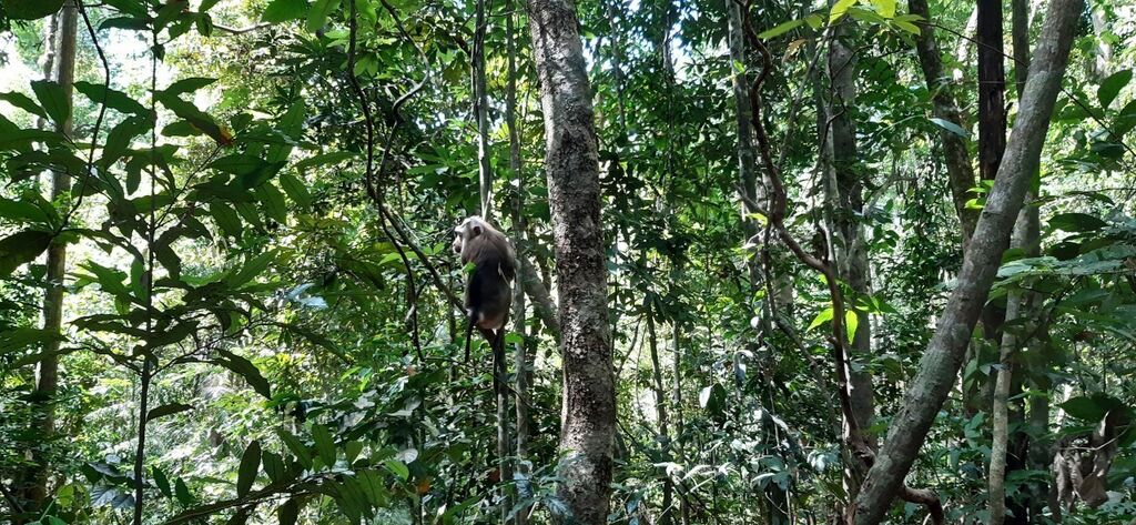 | Un macaque à queue de cochon (nom scientifique Macaca leonina) dans la province de Binh Phuoc. |