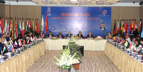 | Des chefs des délégations participant aux 5es Jeux asiatiques de plage Asian Beach Games, le 1er juin dans la ville de Dà Nang. |