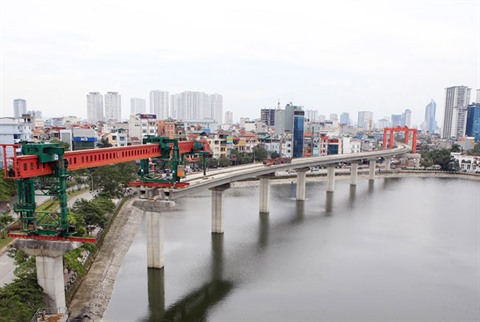 | Travaux du projet de ligne de chemin de fer urbain Cat Linh-Hà Dông. |