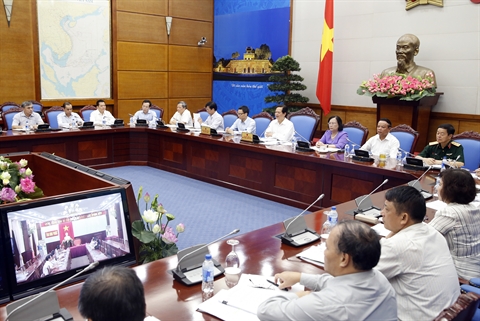 | Vidéo-conférence nationale sur le bilan des trois ans d'application d'une résolution du gouvernement concernant la politique sociale pour la période 2012-2020, le 13 août à Hanoi. |