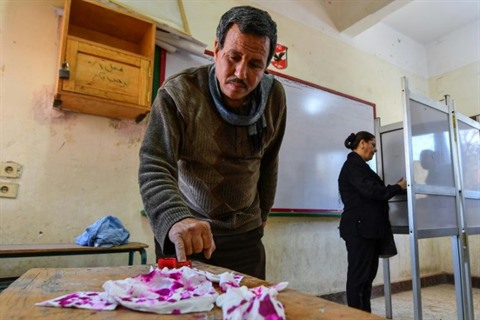 | Un électeur votant lors du référendum sur une modification de la Constitution dans la ville égyptienne d'Assiout le 20 avril 2019. |